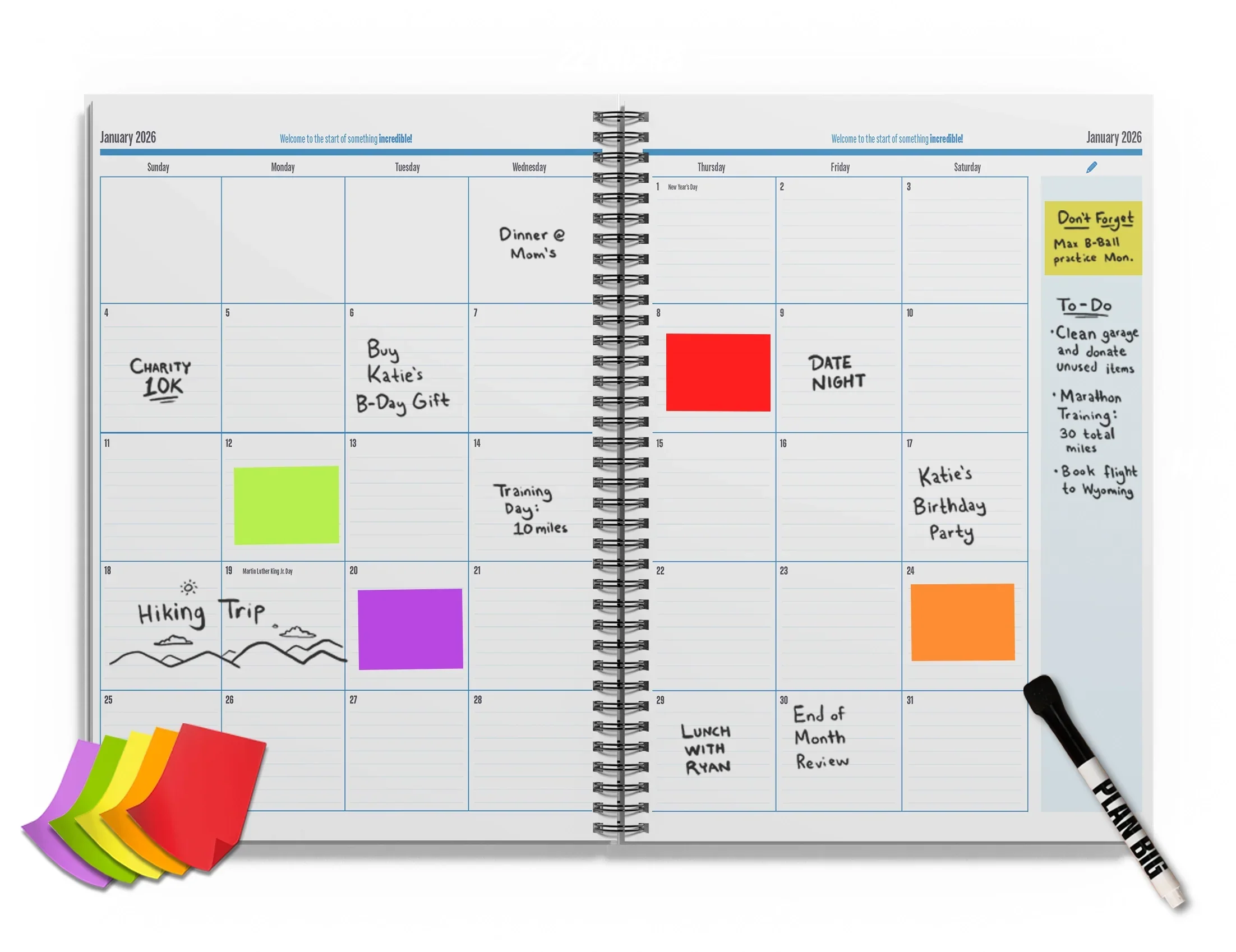 - A fine-point dry-erase marker that writes directly on the planner and the custom labels